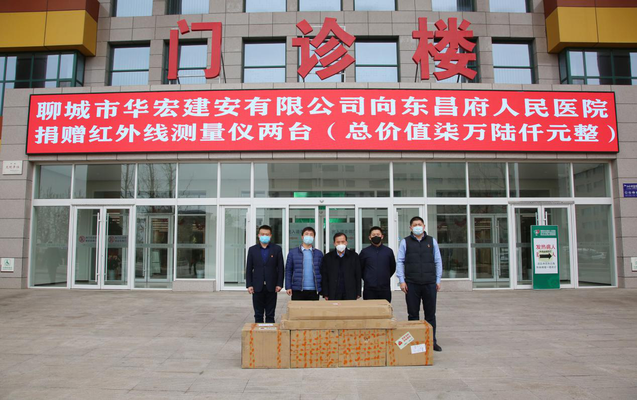聊城市華宏建筑安裝有限公司以高度的社會責任感加入到疫情防控阻擊戰(zhàn)中,回報社會,彰顯大愛。正值新冠肺炎防控工作的關鍵時期,華宏公司領導了解到,防疫物資緊缺是奮戰(zhàn)在一線醫(yī)務人員的難題。公司領導想盡辦法聯(lián)系醫(yī)療設備生產(chǎn)廠家,為新冠肺炎收治定點醫(yī)院聊城市東昌府區(qū)人民醫(yī)院愛心捐贈兩臺紅外線測溫儀,使防疫工作更加安全、高效。